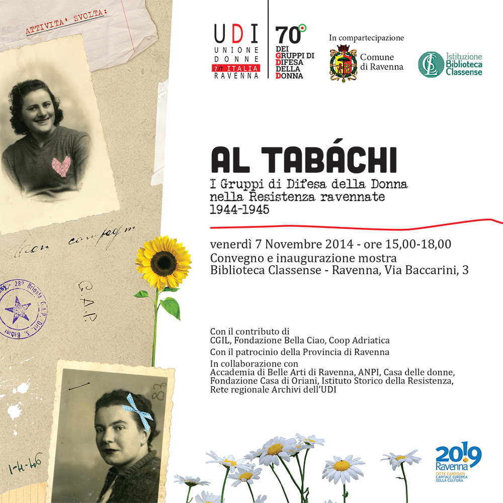 ![]() ![]() ![]() ![]() Progettazione grafica e allestimento in collaborazione con Ombretta Donati per la mostra "AL TABÁCHI" organizzata da Udi Ravenna. La mostra è itinerante, nei prossimi mesi verrà allestita a Massa Lombarda, Alfonsine e Fusignano. Sfoglia il catalogo della mostra. Il video è stato realizzato da Deborah Ugolini. |